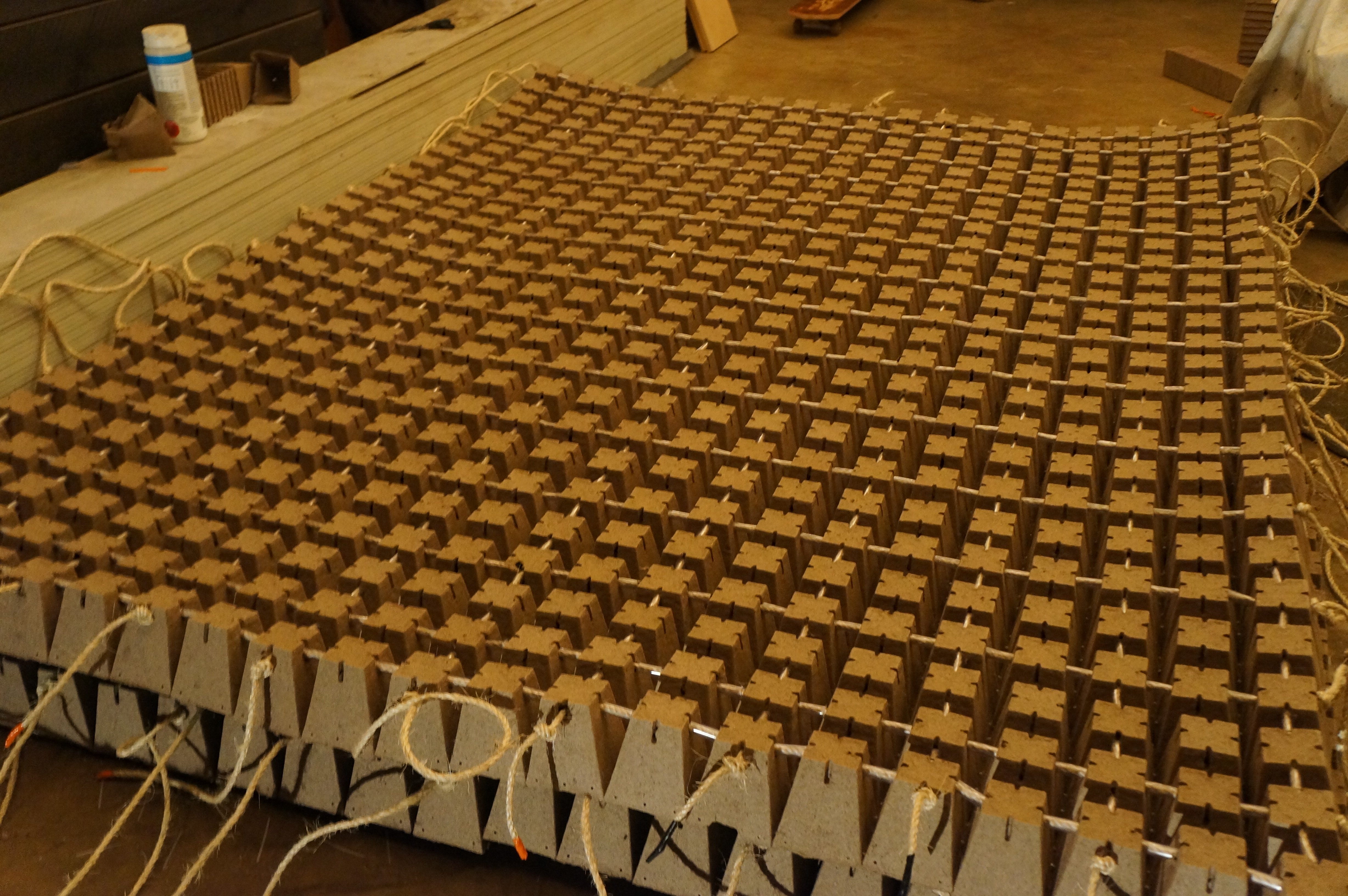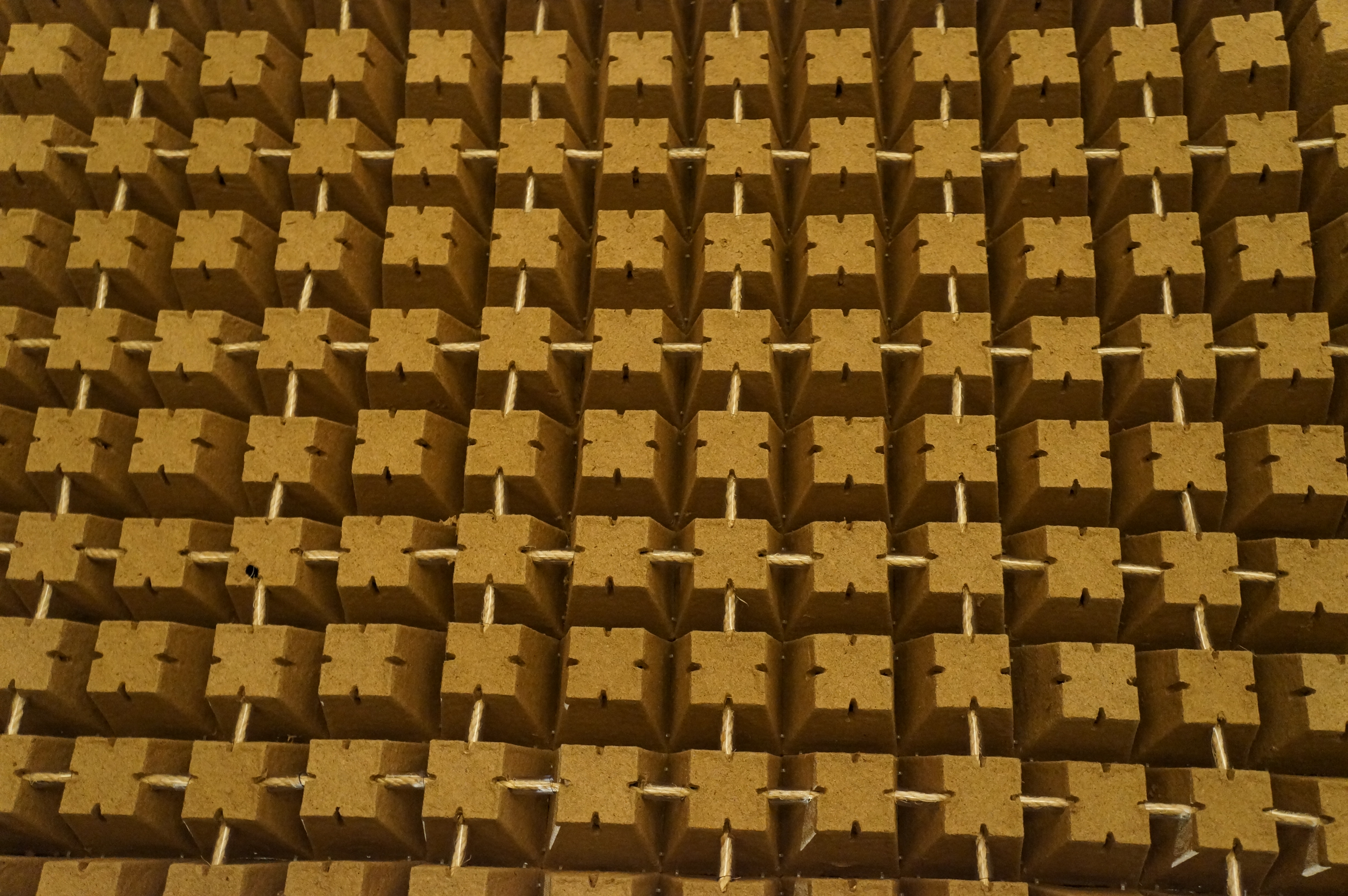 Tillandsia baileyi (Ball Moss) is placed in the modular pressed fiber “plant pots”, creating a vegetated surface on the exterior of the sukkah. Tillandsia baileyi is a lightweight epiphyte, or “air plant” which requires no soil or water to survive, and will place no additional weight on the structure.