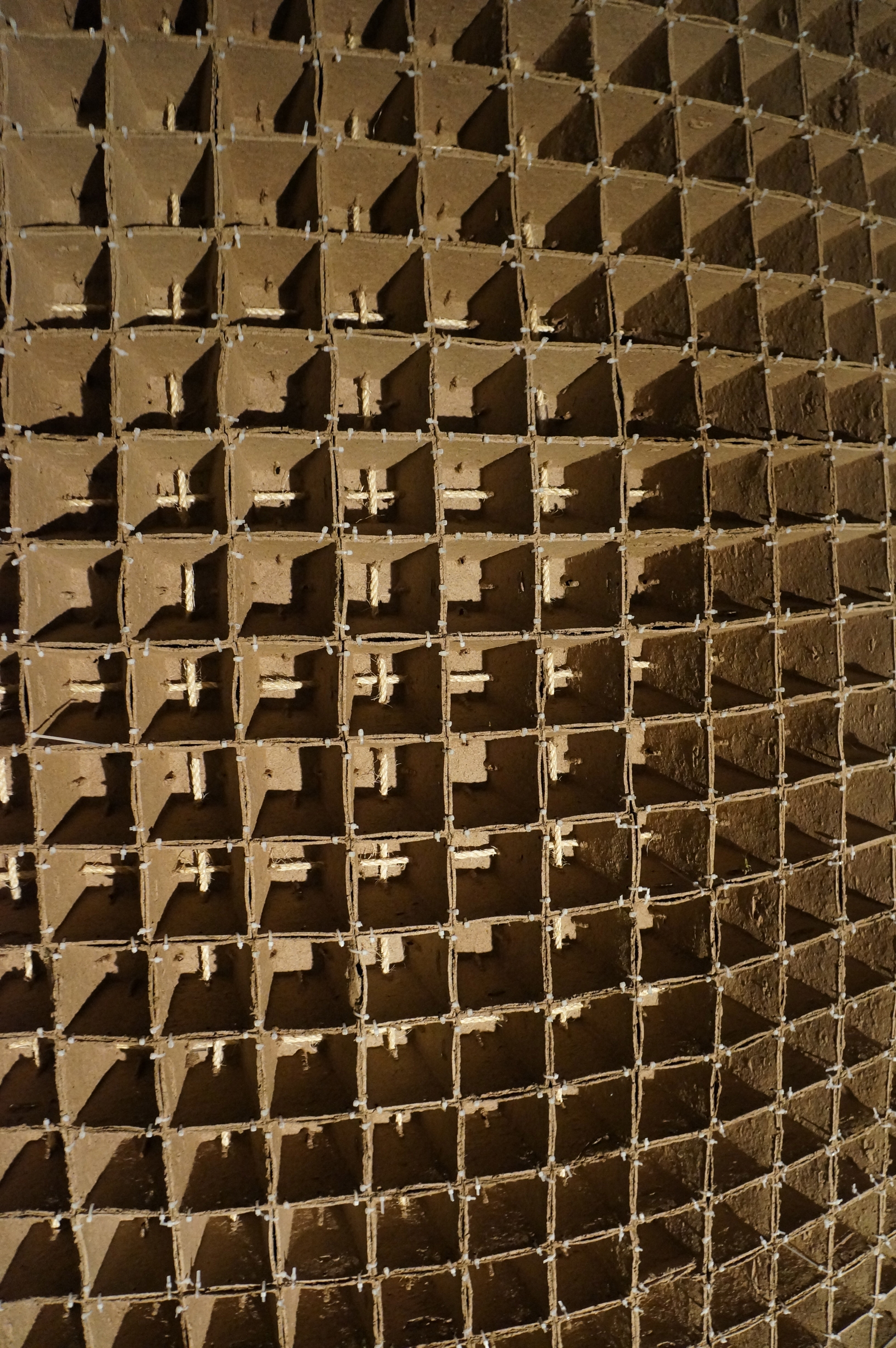 SEW SOW SUKKAH draws from the nature of seasonal cycles and their fundamental importance in both the celebration of the Jewish Sukkot holiday and in the traditional vernacular style of the sukkah structure. The design and construction of SEW SOW SUKKAH responds to the cyclical nature of life. The basic structural component is a form of pressed wood fibers (plant pots), a direct reference to the historic use of branches in traditional sukkahs. The modular fiber units are stitched together (using zip-ties) to form the simple curved walls and roof of the sukkah, which are shaped to provide shade as well as draw the eye upward to the symbolic presence of the sun, moon and stars. The solar system registers the seasonal changes in the cycle of growth and rebirth. The form of SEW SOW SUKKAH was determined by the moon present during the Jewish holiday in 2012 from the transition of the full moon on September 30th to the third quarter moon in early October, thereby registering the daily (diurnal) cycle of the moon during harvest time.
